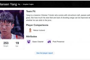 雅虎給楊瀚森的模板是武切維奇,并點(diǎn)評(píng)說(shuō):“楊是一個(gè)巨大的中國(guó)七尺中鋒,有著老派的得分、傳球、籃板能力。但他的腳下速度和投射能進(jìn)步多少,將取決于他能在聯(lián)盟里待多久?!?/p>