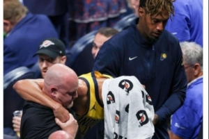 哈利伯頓在第一節(jié)遭遇跟腱撕裂,隨后他退出了比賽。