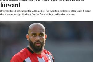 體育資訊06月24日訊 據多家英國媒體報道,曼聯(lián)已經以超6000萬英鎊,再次報價布倫特福德前鋒姆貝莫,《泰晤士報》指出,布倫特福德希望得到更高的報價。