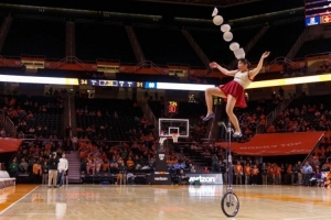 每次登臺之前,她會檢查她的獨(dú)輪車,這臺獨(dú)輪車有七尺(2米1)高,她簡單做一些伸展動作,然后站上去,深吸一口氣,集中精力,就像平日練習(xí)一樣,盡管她已經(jīng)爐火純青,但每次成功完成,她依然會和現(xiàn)場的球迷一樣,感覺很有成就感。