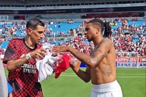 本場(chǎng)比賽賽后,拜仁邊鋒奧利塞找到了本菲卡攻擊手迪馬利亞,兩人交換了球衣。
