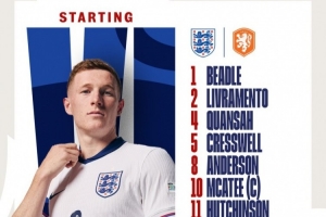 英格蘭U21首發(fā):1-比德?tīng)枴?-利夫拉門(mén)托、4-寬薩、5-克雷斯韋爾、8-埃利奧特-安德森、10-麥卡蒂、11-哈欽森、16-辛謝爾伍德、18-史坦斯費(fèi)爾德、19-埃利奧特、20-阿萊克斯-斯科特