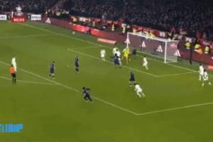 比賽90分鐘補(bǔ)時(shí)第7秒鐘,拉亞沒(méi)收B費(fèi)的任意球準(zhǔn)備快發(fā),此時(shí)身著藍(lán)衣的曼聯(lián)球員迅速退防。
