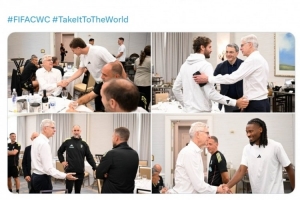 尤文正在美國參加世俱杯,小組賽2戰(zhàn)2勝提前晉級,國際足聯(lián)全球發(fā)展總監(jiān)溫格造訪球隊,與主帥圖多爾及球員會面。