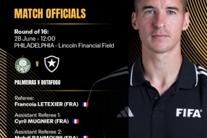 體育資訊6月27日訊 國際足聯(lián)發(fā)布公告,宣布了帕爾梅拉斯vs博塔弗戈、本菲卡vs切爾西的裁判安排。