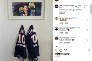 伊布社媒曬出他效力巴黎時(shí)孩子所穿的球衣,球衣上分別帶有“王者”、“傳奇”的字樣,伊布配文:“我來時(shí)如王者,去時(shí)成傳奇?!?/p>