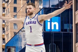在2024-25賽季,迪金森代表堪薩斯大學出戰(zhàn)34場比賽,場均30.1分鐘,得到17.4分10.0籃板2.1助攻1.0搶斷1.3蓋帽,三項命中率為52.6/27.6/74.8%。