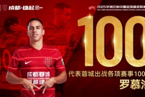 體育資訊6月27日訊 羅慕洛更新社媒,紀(jì)念代表成都蓉城出戰(zhàn)100場比賽。