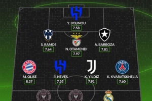 中場:奧利塞 (拜仁) 、魯本-內(nèi)維斯 (新月)、伊爾迪茲 (尤文圖斯)、克瓦拉茨赫利亞 (巴黎)