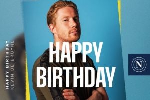 體育資訊6月28日訊 今天是德布勞內(nèi)的34歲生日,那不勒斯為他送上祝福。