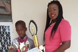 視頻中VJ收到了一張童年照片,照片中自己拿著獎(jiǎng)杯和媽媽合影。