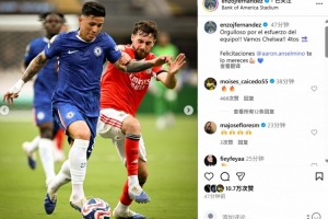 賽后恩佐在個(gè)人社媒曬出本場(chǎng)照片,配文寫道:“為球隊(duì)的努力感到驕傲!切爾西加油, 我們進(jìn)入四分之一決賽!祝賀安塞爾米諾,這是你應(yīng)得的!”