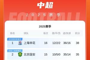 體育資訊06月29日訊 中超第16輪,今日比賽已全部結(jié)束。申花2-1亞泰先賽反超國(guó)安暫升榜首,蓉城2-2戰(zhàn)平三鎮(zhèn)僅收獲1分仍居第三,距榜首4分。梅州、海牛、亞泰全部輸球,仍位列積分榜末尾位置。