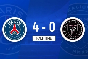 目前巴黎對陣邁阿密的世俱杯1/8決賽正在進(jìn)行,巴黎上半場4-0領(lǐng)先。