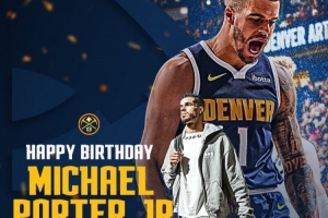體育資訊6月30日訊 今天,掘金官方曬照,祝隊內(nèi)球員小邁克爾-波特27歲生日快樂。