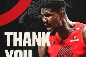 開拓者官方曬圖致謝艾頓:“謝謝你的一切,DA(德安德烈-艾頓)。感謝你在撕裂之城度過的時(shí)光??。”