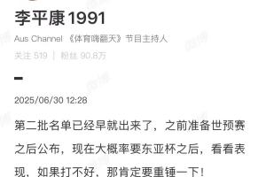 媒體人李平康透露,足壇掃黑第二批名單早就出來了,之前準備世預賽之后公布,現(xiàn)在大概率要東亞杯之后,看看表現(xiàn),如果打不好,那肯定要重錘一下! ???