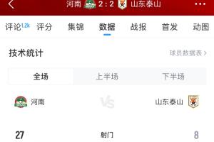 回看本場的數(shù)據(jù)統(tǒng)計,泰山全場比賽數(shù)據(jù)落于下風(fēng),射門8-27落后,控球率只有三成。