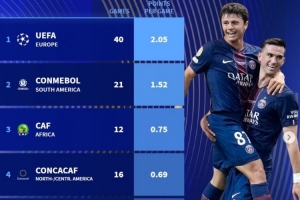 體育資訊6月30日訊 世俱杯八強(qiáng)已定四席,《轉(zhuǎn)會(huì)市場》也統(tǒng)計(jì)了本屆賽事至今的各大洲球隊(duì)場均拿分情況。