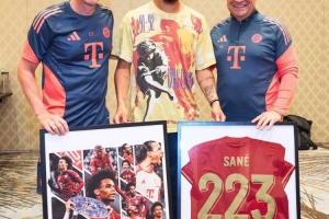 數(shù)據(jù)統(tǒng)計顯示,薩內(nèi)效力拜仁5年,共計223場正式比賽,貢獻61粒進球55次助攻,隨隊贏得4次德甲冠軍。薩內(nèi)獲贈了兩件紀念品:印有數(shù)字"223"的特制球衣(紀念其為拜仁的出場次數(shù));記錄五年拜仁生涯精彩瞬間的特制海報,附題詞"謝謝你,勒魯瓦!"