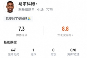 體育資訊7月1日訊 利雅得新月在世俱杯16強戰(zhàn)2-2暫時戰(zhàn)平曼城,馬爾科姆本場數(shù)據(jù)如下: