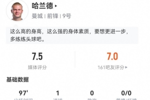 體育資訊7月1日訊 利雅得新月在世俱杯16強(qiáng)戰(zhàn)常規(guī)時(shí)間2-2戰(zhàn)平曼城,哈蘭德本場(chǎng)數(shù)據(jù)如下: