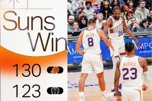 體育資訊1月17日訊?NBA常規(guī)賽,太陽(yáng)130-123戰(zhàn)勝奇才。