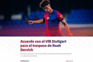 體育資訊7月1日訊 巴薩官方消息,B隊18歲中場諾亞-達維希轉會加盟斯圖加特,巴薩在協(xié)議中保留了這位德國中場的未來轉會分成比例以及優(yōu)先回購權。