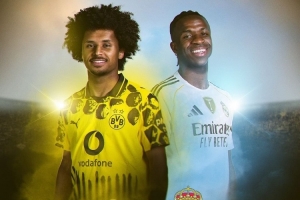 多特將在1/4決賽中對陣皇馬,多特官方社媒曬出海報預(yù)熱比賽,內(nèi)容為阿德耶米pk維尼修斯。