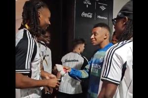 視頻中,姆巴佩先是與圖拉姆寒暄,隨后看見圖拉姆手中有一個拉布布,立馬拿起來,一臉不可置信。