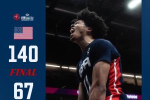 體育資訊07月03日訊 U19男籃世界杯,美國隊以140-67狂勝約旦隊,輕松晉級八強。