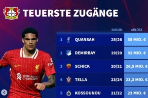 體育資訊7月3日訊 利物浦中衛(wèi)寬薩已經(jīng)官宣轉(zhuǎn)會勒沃庫森,《轉(zhuǎn)會市場》統(tǒng)計顯示他也是藥廠隊史標(biāo)王。