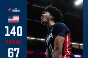 體育資訊7月3日訊 U19男籃世界杯,美國(guó)隊(duì)以140-67狂勝約旦隊(duì),輕松晉級(jí)八強(qiáng)。