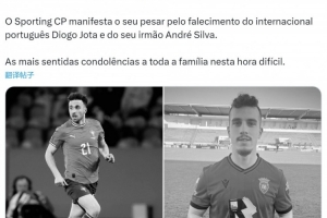 “足球世界蒙受了巨大損失,葡萄牙體育俱樂部對葡萄牙國腳迪奧戈-若塔及其弟弟安德烈-席爾瓦的去世表示哀悼。在此艱難時刻,我們向若塔全家致以最深切的慰問。”