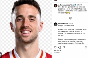 體育資訊7月3日訊 官方消息,利物浦前鋒迪奧戈-若塔因車禍不幸離世,年僅28歲。C羅母親在社媒發(fā)文致哀。