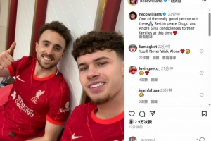 內(nèi)科-威廉姆斯曬出合影并悼念若塔:“一位真正的好人????安息吧,若塔和安德烈-席爾瓦,在此刻向他們的家人致以哀悼??”