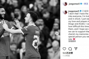 此刻我不知該說(shuō)什么好。和大家一樣,我真的感到無(wú)比痛心和震驚。我只想向迪奧戈(若塔)和安德烈的家人送上我所有的愛(ài)與祈禱。