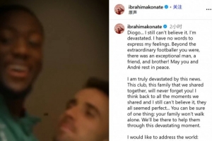 迪奧戈(若塔)……我還是沒法相信。我心都碎了,真的不知道該怎么表達(dá)此刻的感受。你不僅是一位非凡的球員,更是一位難得的摯友、兄弟!愿你和安德烈安息。