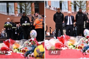 埃弗頓隊中兩位有葡萄牙血統(tǒng)的球員切爾米蒂、貝托以及俱樂部大使前往安菲爾德吊唁若塔。