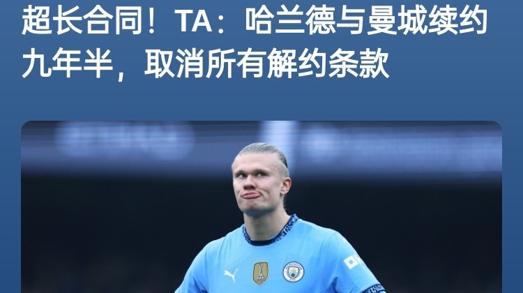 體育資訊01月17日訊 TA最新獨(dú)家消息,哈蘭德與曼城簽下為期九年半的新合同,并取消所有解約條款。