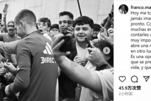 我滿懷感激離開。感謝球迷無條件的愛,感謝俱樂部每個(gè)人的栽培,感謝隊(duì)友共享這份激情,更感謝我的家人始終相伴。河床教會(huì)我:追夢需要謙卑、拼搏,還有對球衣的熱愛。