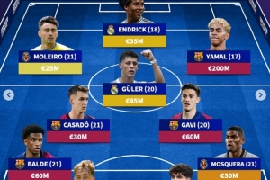 德轉(zhuǎn)列西甲U21最貴陣:總身價(jià)6.28億歐元