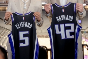 體育資訊7月5日訊 薩克拉門托國王隊為今年兩位新秀召開了新聞發(fā)布會,兩人也在現(xiàn)場展示了各自的球衣號碼。24號秀尼克-克利福德選擇了5號球衣,42號秀馬克西姆-雷諾則選擇了42號球衣。