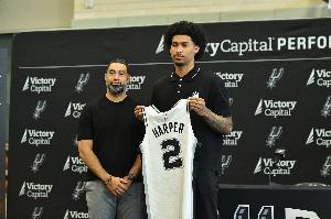 ??馬刺曬榜眼迪倫-哈珀&14號秀球衣上身照 哈珀身披2號戰(zhàn)袍