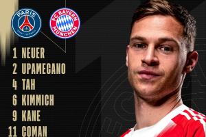 拜仁首發(fā):1-諾伊爾、2-于帕梅卡諾、4-塔、44-斯坦尼西奇、6-基米希、27-萊默爾、42-穆西亞拉、45-帕夫洛維奇、11-科曼、17-奧利塞、9-凱恩