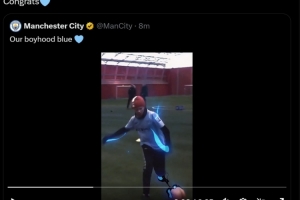 曼城官方曬出了哈蘭德小時(shí)候身穿曼城球衣練球的視頻,阿爾菲-哈蘭德轉(zhuǎn)發(fā)并寫道:祝賀。