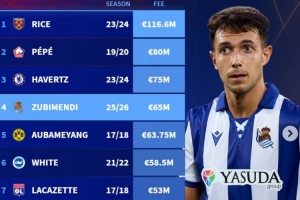 體育資訊7月6日訊 阿森納官方宣布祖比門迪加盟,轉(zhuǎn)會費6500萬歐,德轉(zhuǎn)也盤點了阿森納隊史引援花費榜,祖比門迪位列第4,以下為具體榜單: