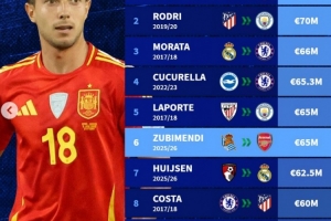 體育資訊7月6日訊 祖比門迪正式加盟阿森納,德轉(zhuǎn)也盤點了西班牙球員歷史轉(zhuǎn)會費榜,其中凱帕居首 ,祖比門迪第6,具體如下: