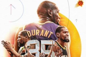 太陽(yáng)官方曬圖致謝杜蘭特寫道:“謝謝你,KD?!?/p>
