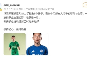 顧斌今日在社媒發(fā)文,向浙江隊(duì)告別。他寫道: